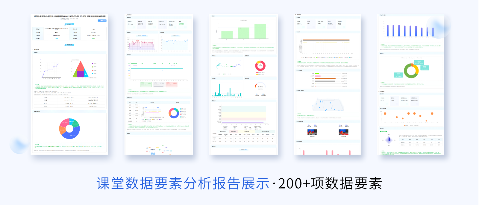 AI課堂數(shù)據(jù)要素系統(tǒng)自動采集、標(biāo)注,生成包括老師授課語音、課堂軌跡、PPT課件、板書內(nèi)容、學(xué)生考勤、學(xué)生互動等多項(xiàng)課堂觀測數(shù)據(jù),形成多維課堂數(shù)據(jù)要素分析報告。