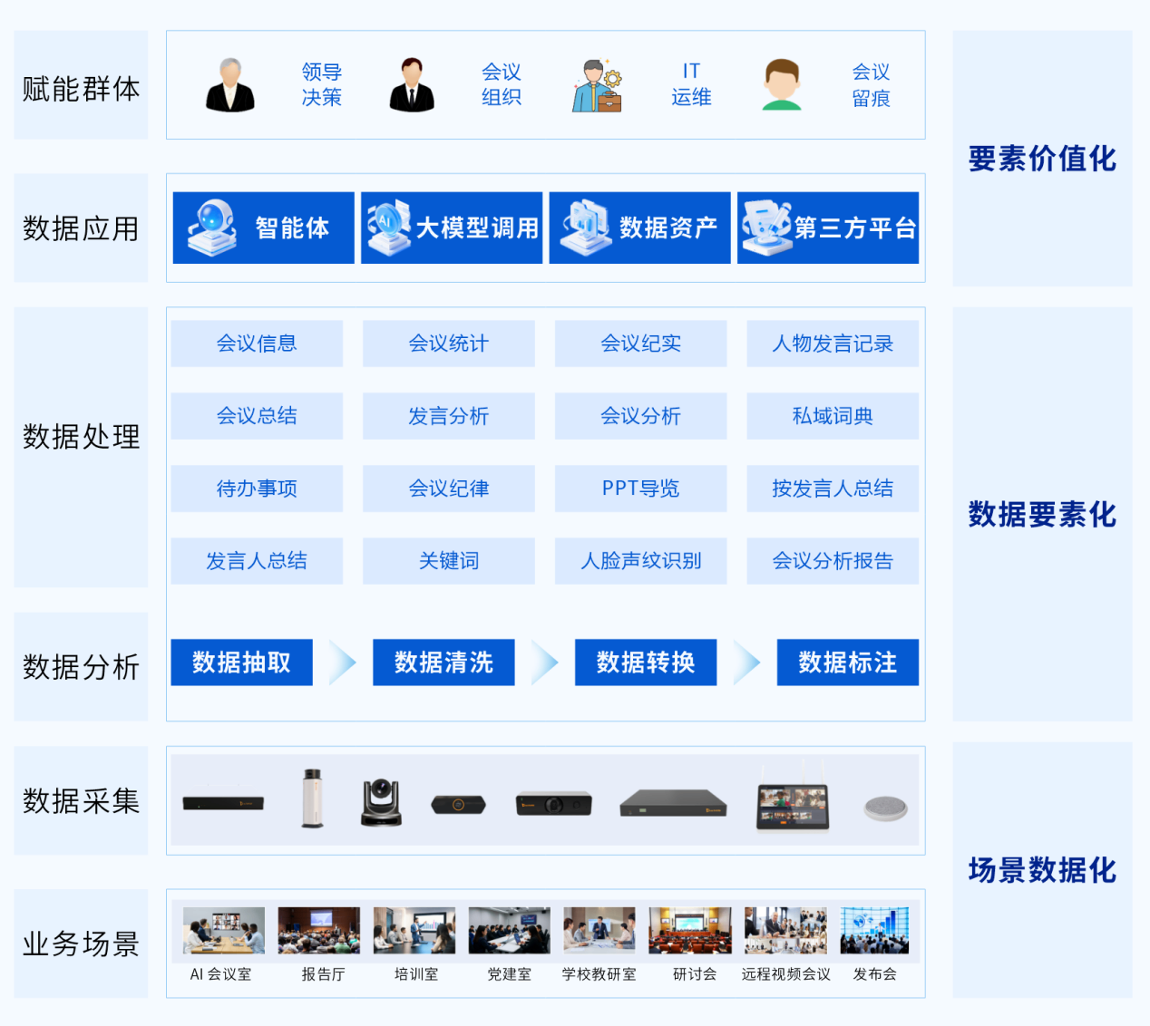銳取響應國家精簡會議的政策導向,深度融合人工智能與數(shù)據(jù)要素,推出「銳取AI會議數(shù)據(jù)要素方案」,以AI賦能會議全流程,深度挖掘多維數(shù)據(jù)價值,助力實現(xiàn)會議質(zhì)量提升與規(guī)模管控,為各類單位重塑高效會議體驗。